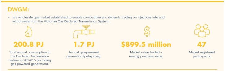 A Victorian declared wholesale gas market (DWGM) was established in 1999 to enable competitive, dynamic trading based on injections into, and withdrawals from, the transmission system that links multiple producers, major users and retailers. In 2007, intra-day trading intervals were introduced.